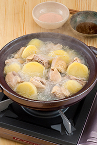 - 雞肉切成入口大小,土豆去皮切成5毫米厚的薄片,浸泡水中后用篩子瀝干水分。粉絲則泡5分鐘熱水使其充分蓬松,并切成入口大小。