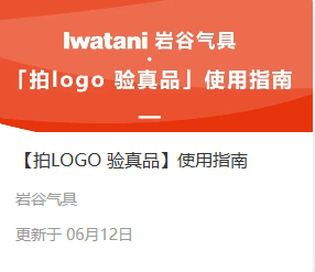巖谷氣具為用戶推出【拍LOGO.驗真品】產(chǎn)品信息識別系統(tǒng),使消費者可以隨時隨地識別產(chǎn)品信息,瞬間驗真品。 有效的產(chǎn)品信息識別系統(tǒng),僅包括品牌官方微信公眾號,其他任何方式、網(wǎng)頁、工具等均非官網(wǎng)認可渠道,為確保產(chǎn)品識別信息準確,請在官方指定渠道進行識別驗證