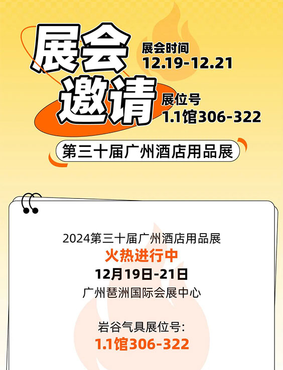 12月18-20日第三十一屆廣州酒店用品展覽會 | 巖谷氣具誠邀您臨位品鑒